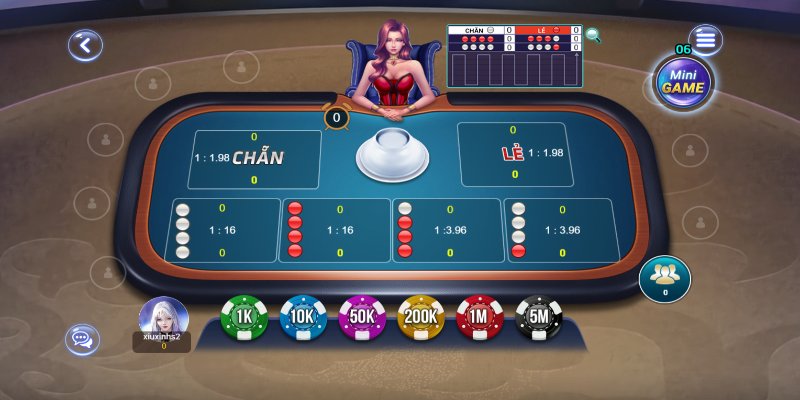 • Tài/Xỉu: Cược dựa trên tổng điểm của 4 đồng xu theo quy định của trò chơi. Tỷ lệ trả thưởng tương đương 1:0.96.